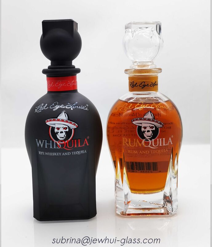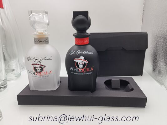Botella de vidrio con caja mezclada de 375 ml para ron y whisky, botella de vidrio para vodka 1